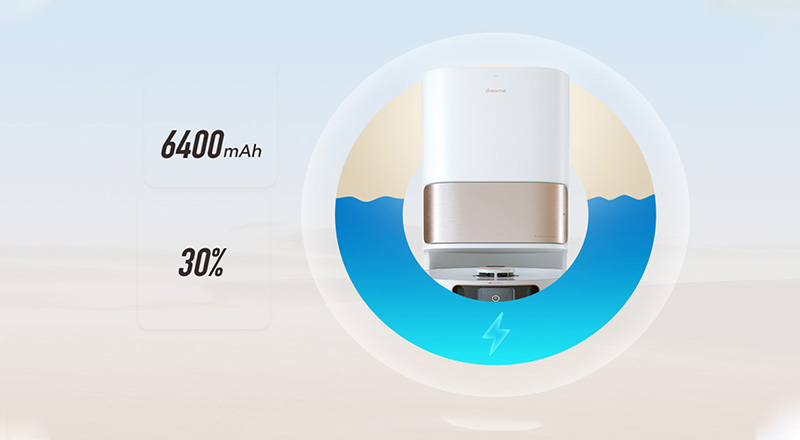 Bên cạnh đó, dung lượng pin khủng cũng tạo nên hiệu suất làm việc cực kỳ cao cho robot. Pin 6400mAh vừa cung cấp năng lượng lớn, vừa giúp robot hoạt động bền bỉ hơn đến 2 giờ chỉ trong một lần sạc.