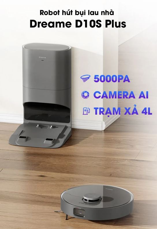 Sau thành công của dòng robot hút bụi lau nhà tầm trung D10 Plus, Dreame tiếp tục tung ra phiên bản nâng cấp D10S Plus với nhiều nâng cấp vượt trội mang đến cho người tiêu dùng sự tiện nghi bằng khả năng hoạt động độc lập, tự động hóa. Đặc biệt trên Dreame D10S Plus sẽ có sự xuất hiện của camera AI tối ưu khả năng di chuyển, giảm thiểu tối đa tình trạng mắc kẹt, dễ dàng theo dõi một cách trực quan.
